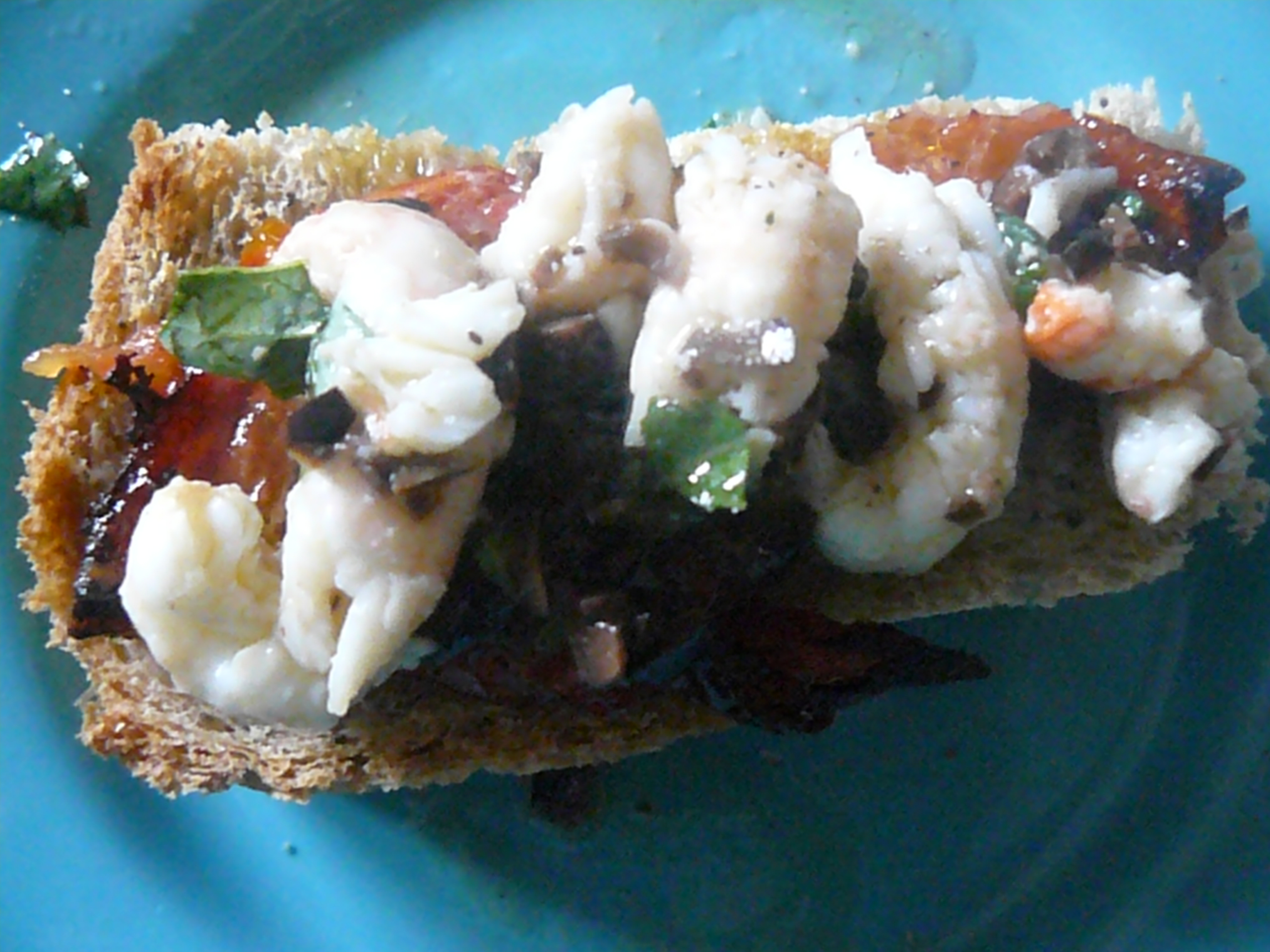 • Les répartir sur le pain avec les langoustines et la marinade