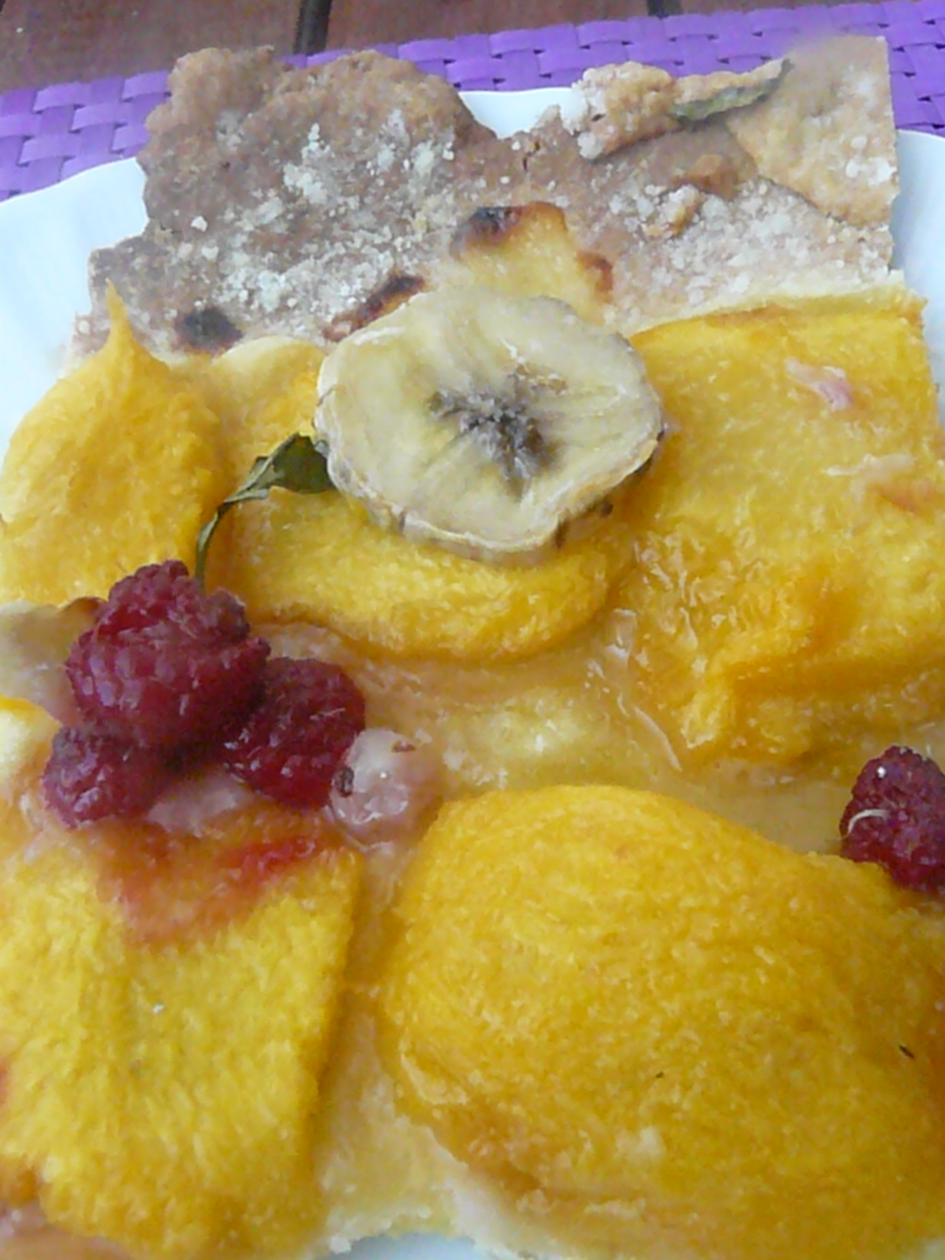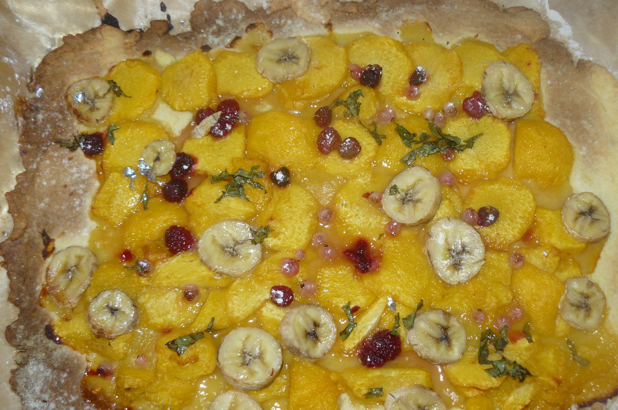 - Disposer les fruits sur la pâte ainsi que le basilic