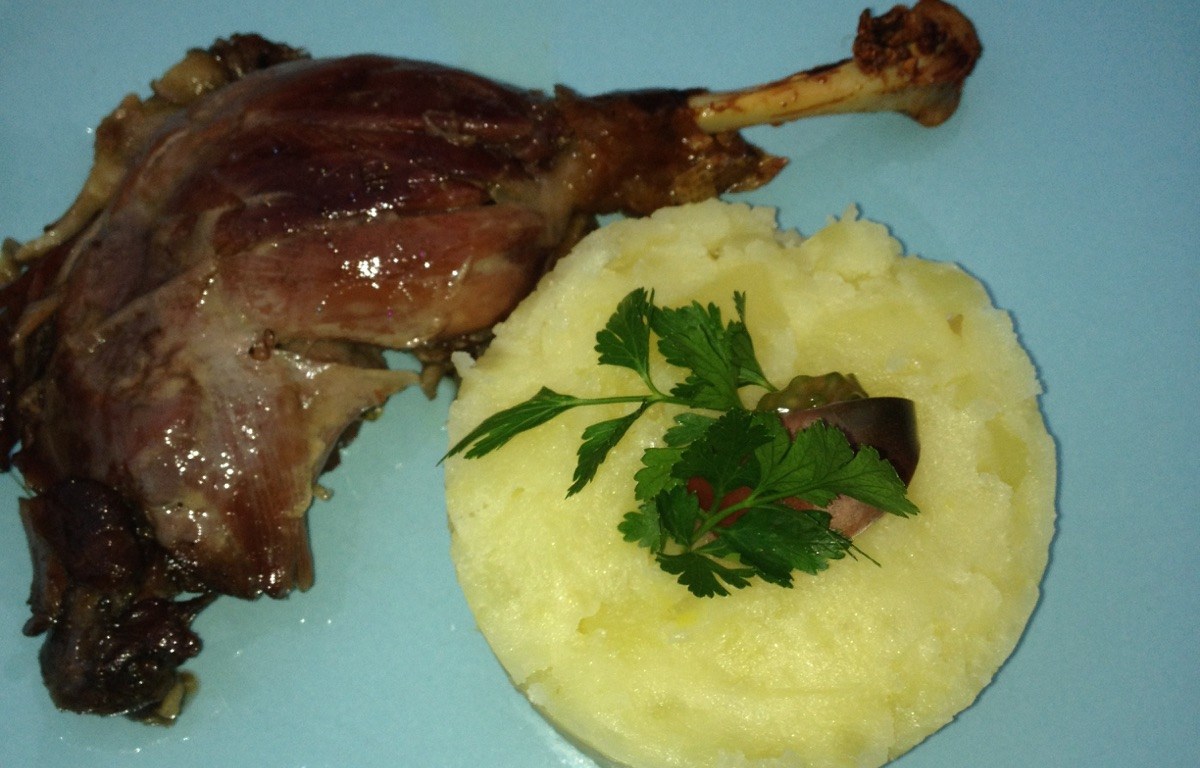 - A l’aide d’un emporte pièce, présenter joliment la purée et déposer une cuisse de canard