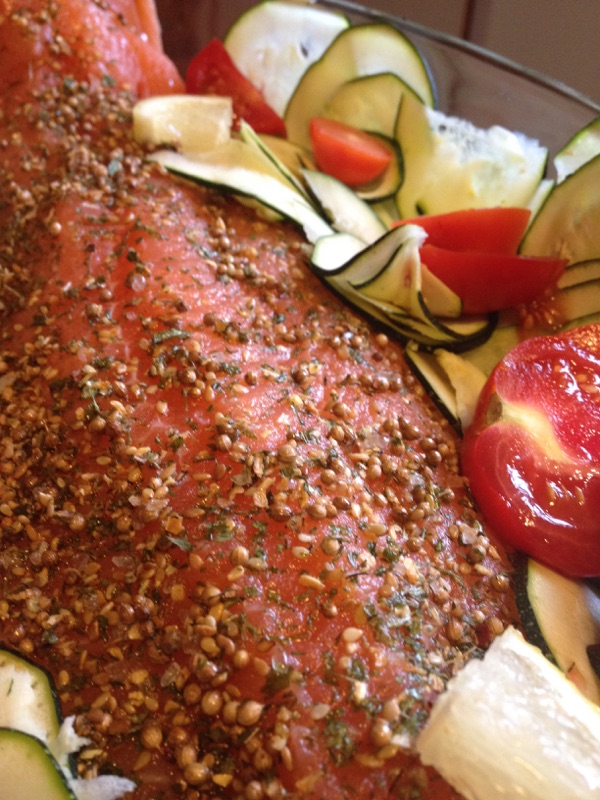 Hier soir, mon fils me demande de lui préparer son plat préféré Le fameux saumon risotto, mais bon parfois on a envie de changement non? ça tombe bien, j’ai commandé récemment chez Sud Corner une marinade sèche spéciale poisson, pas encore testée. Donc allons y pour la marinade et comme mon potager est toujours aussi généreux en courgettes et tomates râpons en quelques unes. Allez hop c’est parti pour la recette!