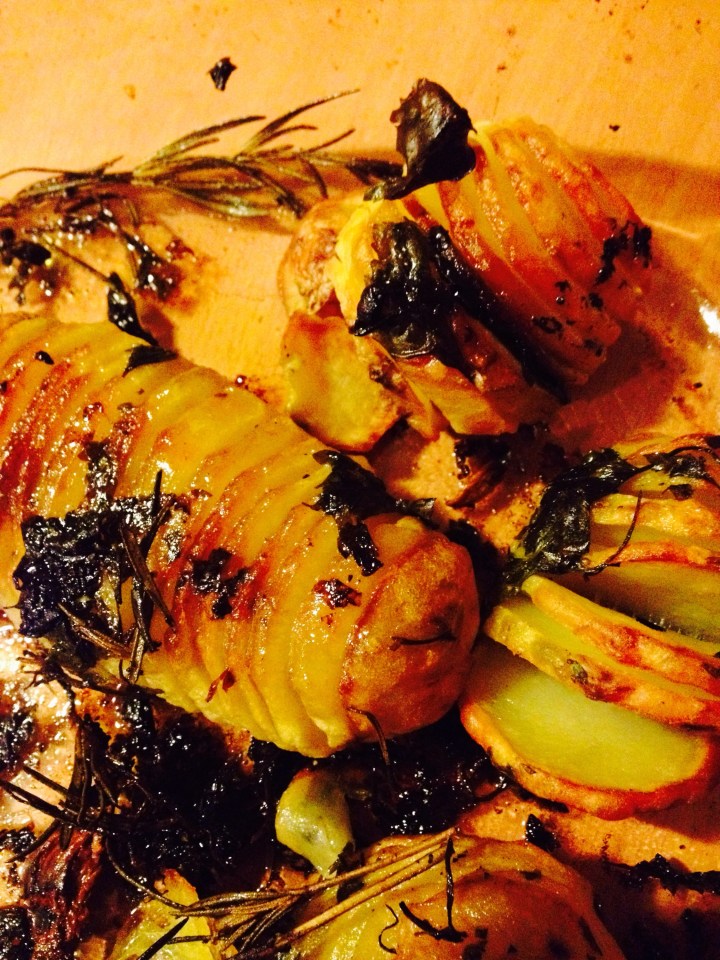 • La fameuse technique pour couper en accordéon les pommes de terre est de les poser entre deux baguettes. Ainsi le couteau butera sur les baguettes et ne coupera pas entièrement la pomme de terre