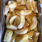 • Lavez les pommes, pelez les, ôtez les pépins et coupez les en tranches épaisses (les pommes pas les pépins!)