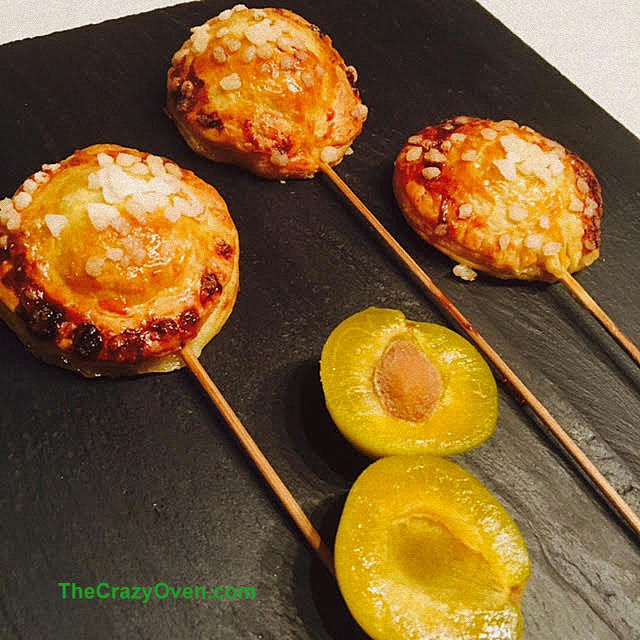 C’est reparti pour le jeu Régalades en cascade initié par mon copain Olivier du blog Sharing Cuisine et ma 4ème participation, j’ai l’impression de faire partie des murs ;). C’est quoi Régalades en cascade? un défi lancé à 5 blogueurs par Monsieur Woody. Leur mission : réaliser une recette inédite autour d’un ingrédient et la publier le 1er samedi du mois à 11h sur leur blog, puis chacun d’entre eux passe le flambeau à 5 de leurs amis blogueurs avec un nouveau ingrédient et ainsi de suite…Cette fois-ci, c’est Marie de l’excellent blog Cooking & Bon appétit qui m’a invité à participer. Le thème choisi a été celui des prunes. Il est vrai que j’ai fait pas mal de recettes à base de ces petits fruits si délicieux, du coup cette fois ci j’ai décidé de faire méga simple mais rigolos. J’avais de la pâte feuilletée à la farine complète et de jolies reines claudes, du coup l’idée de la sucette s’est imposée, ne me demandez pas comment. Bon je n’ai rien inventé, il existe pleins de recettes de sucettes ou pie pop sur Pinterest et sur la blogosphère. Allez hop c’est parti pour la recette!