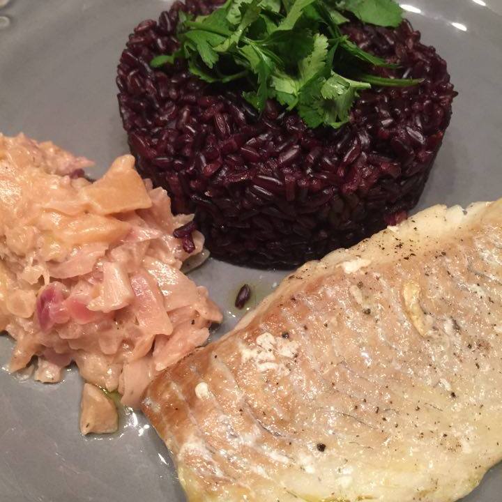 Back to reality après ce petit intermède télévisuel et retour en cuisine! Vous connaissez désormais mon… Continuer de lire Lieu au riz noir, compotée d’oignons aux pommes