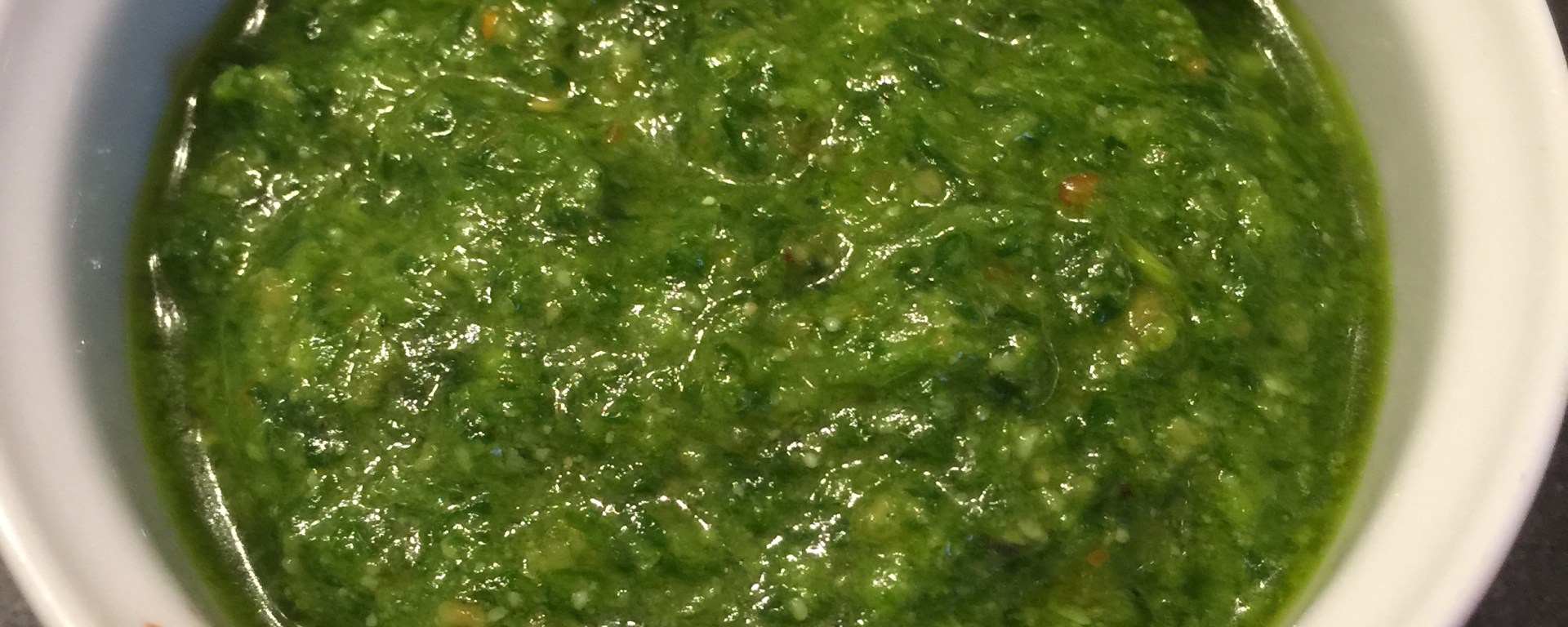 - Mixez et ajoutez l’huile d’olive afin d’obtenir la texture que vous souhaitez. Pour moi ce sera pas trop pâteuse ni trop liquide bien entendu, pour napper la viande.