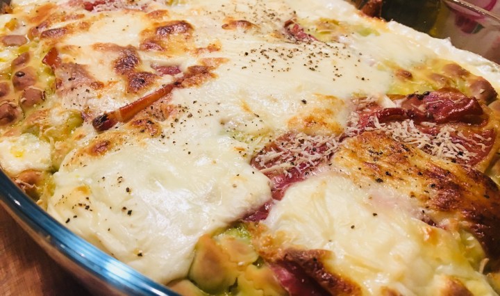 Gratin de ravioles du Dauphiné au Speck et à la mozza