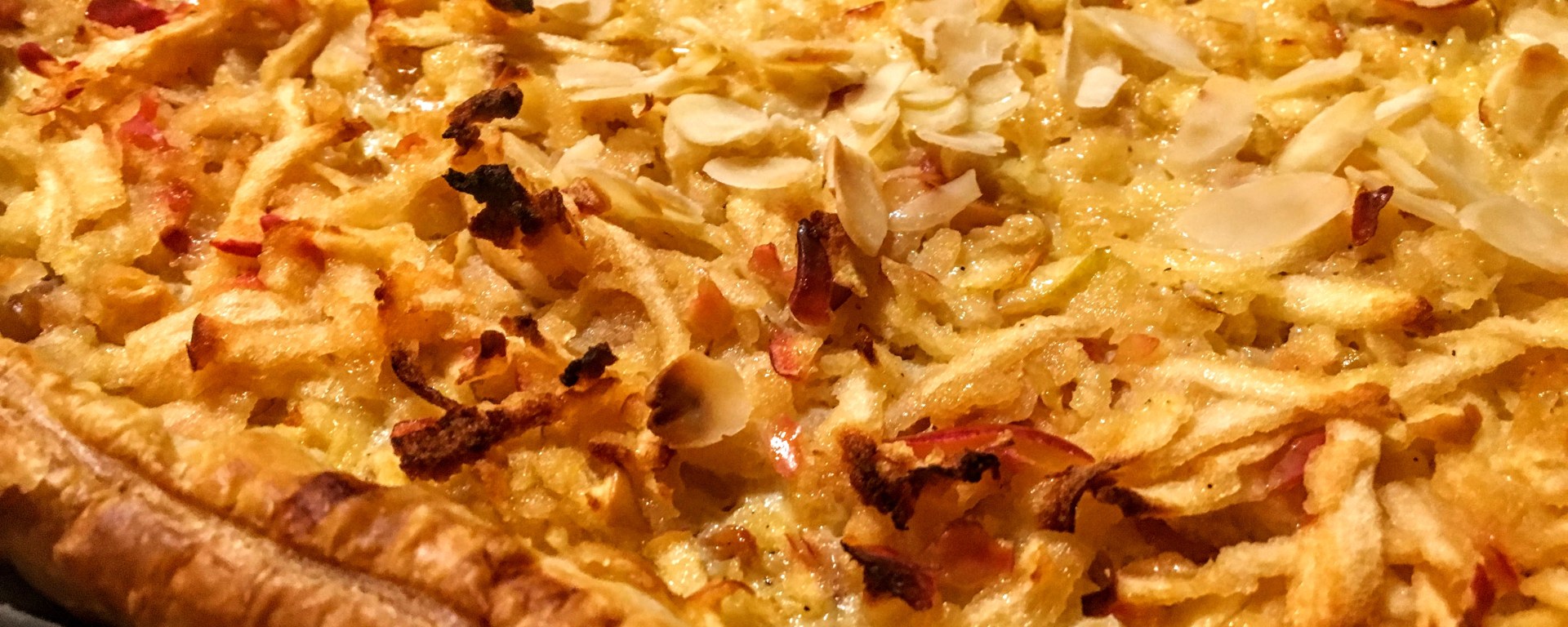 Hier, le mercredi est The Day, vous savez celui qui est synonyme de course effrénée aux activités, d’aller-retour incessants, sans compter essayer de travailler, de gérer les petits bobos au corps et à l’âme. De rassurer, d’essayer de ne pas s’énerver contre tous ceux qui sur la route pensent qu’on est là pour se promener, bref un mercredi de maman et de papa, somme toute assez classique mais qui vous laisse sur les genoux quand même ;). Parce qu’en plus de nous faire cavaler, c’est qu’ils ont faim nos petits et grands monstres. Du coup, après m’être décidée à juste faire une bonne soupe et des œufs à la coque, je me suis dit qu’une petite douceur ne serait pas de trop pour clore le dîner et finir la journée avec un plaisir simple mais efficace. Alors dans ce cas, le mieux c’est la tarte aux pommes non? Cette fois-ci et comme je n’avais pas trop de temps, je me suis dit que j’allais les râper mes pommes et les recouvrir d’un joli flan à l’alsacienne pour encore plus de gourmandises. Bien après cette digression, c’est parti pour la recette!