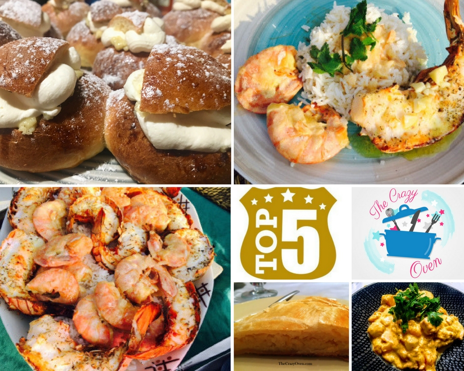 Comme on ne change pas une équipe qui gagne, nous démarrons l’année 2018 avec encore et toujours les queues de langoustes, au moins je sais que le jour où je sors mon bouquin de cuisine, ce sera la recette phare du livre 😉 La galette des rois est parvenue à se faire une place dans le classement et ma couronne de Semlor aussi. J’en profite pour vous rappeler que vous êtes les bienvenus dans mon groupe de partage de recettes sur Facebook A table avec The CrazyOven . Vous y trouverez les recettes de passionnés de cuisine et de pâtisserie, et vous pourrez bien entendu participer en proposant les vôtres, même si vous n’avez pas de blog, une photo de votre plat, la recette et hop! Tout ça dans la joie et la bonne humeur et le respect des autres bien entendu. Et sinon, vous pouvez toujours aller vous promener sur mon Instagram, ma page Facebook et mon compte Twitter et surtout n’hésitez pas à partager les recettes que vous avez aimées, et à les commenter. Allez hop c’est parti pour le TOP 5!!!