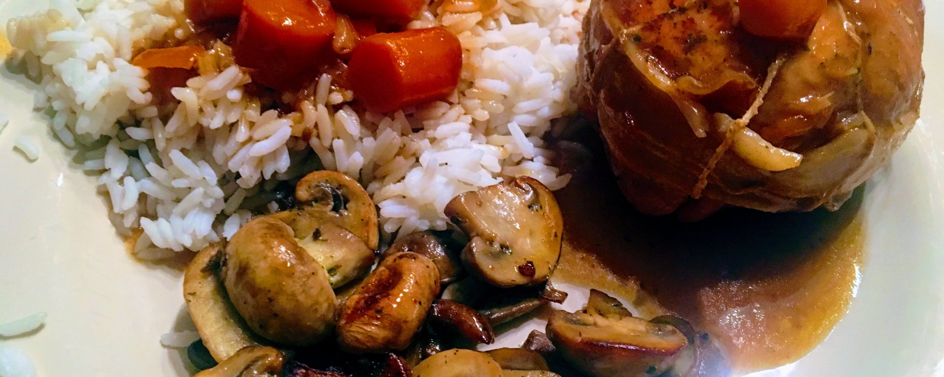 - Servez les paupiettes avec la sauce qui doit être relativement épaisse, les carottes, le riz et la poêlée de champignons