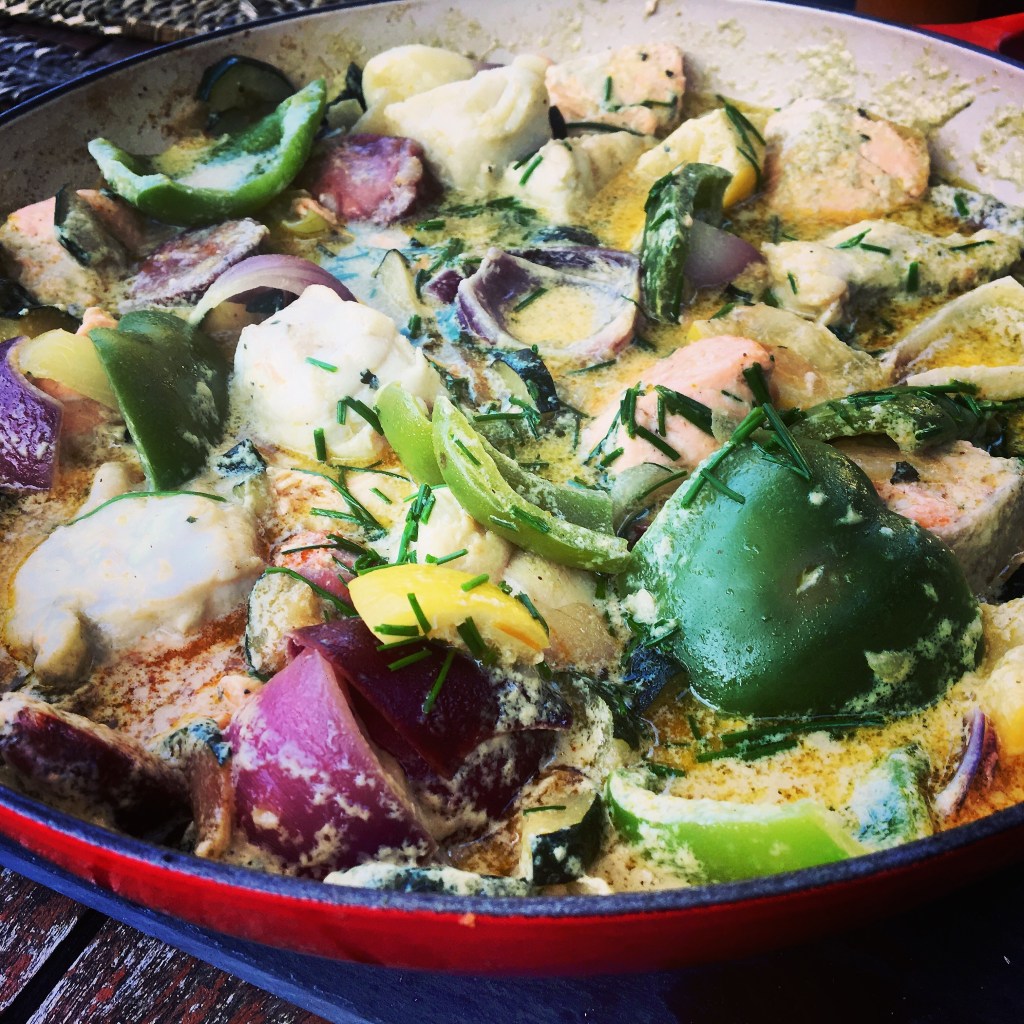 Aujourd’hui je vous propose un plat simplissime à faire mais parfait pour régaler tout le monde, à condition d’aimer le poisson bien entendu 😉 Le curry qu’il soit de viande, de poisson ou juste de légumes fait partie des plats qui vous font voyager dans l’assiette. Cette fois-ci se sera aux poissons car mon boucher a ouvert un petit marché pour développer son activité et un poissonnier vient tous les week-end avec de belles pièces, alors j’avoue que je ne m’en prive pas. Allez hop c’est parti pour la recette!