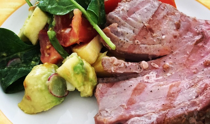 Toujours en villégiature au Pouliguen, nous vous proposons avec mon papa, une recette hyper simple et délicieuse. Des steaks de thon à la plancha, juste accompagnés d’une salade gourmande.   Allez hop c’est parti pour la recette! INGRÉDIENTS:(pour 4 personnes) 3 … Continuer de lire Thon rouge à la plancha :recette express